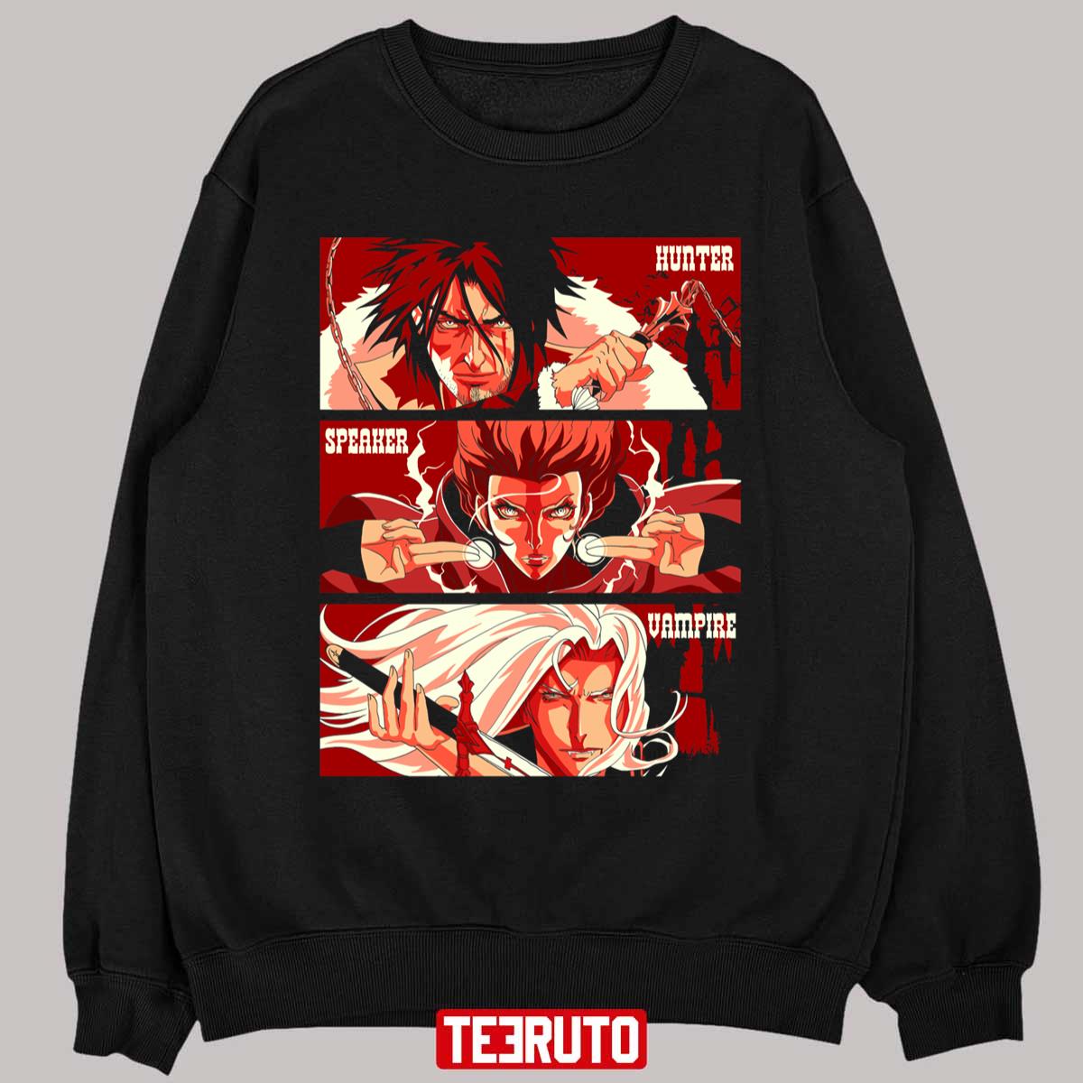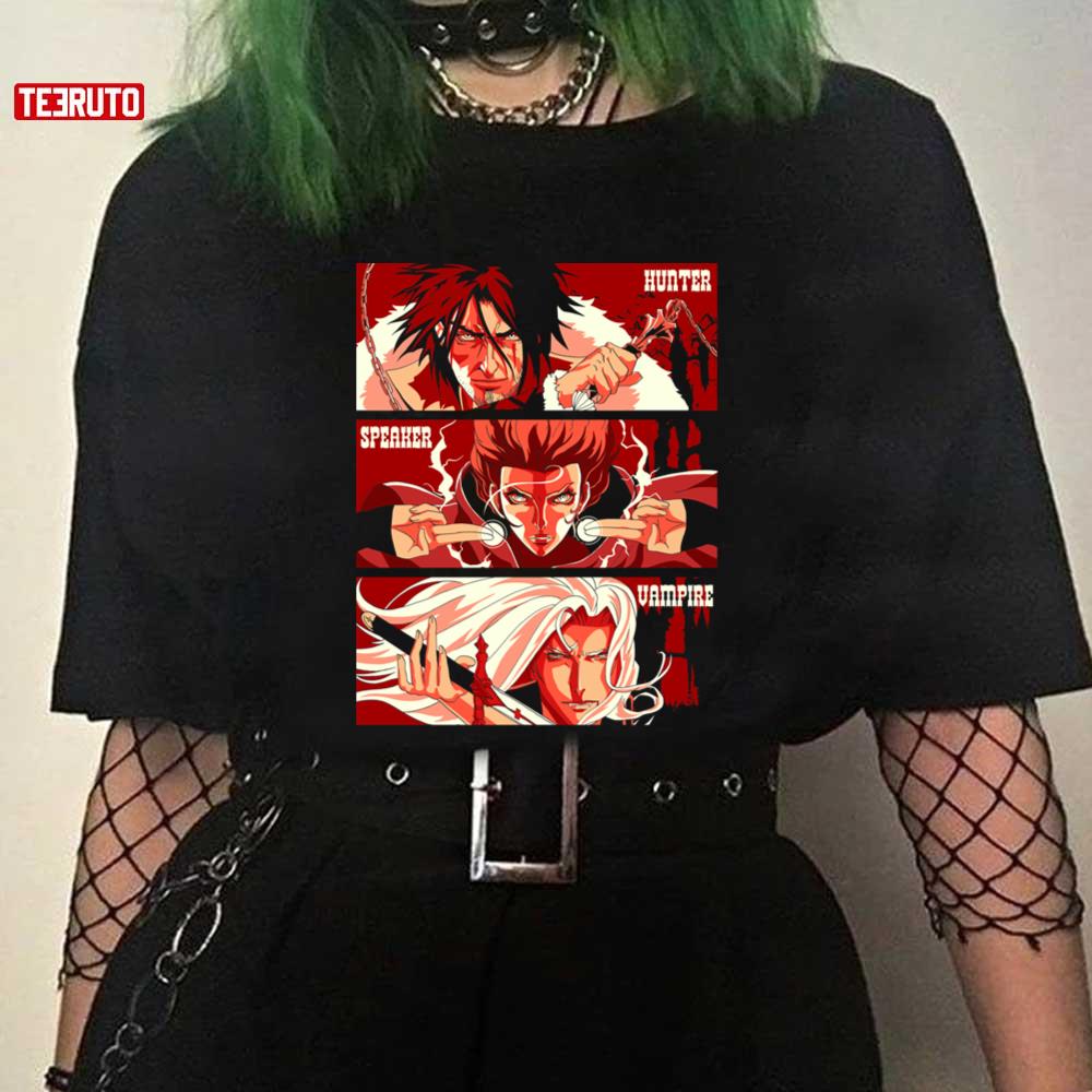 Product The Hunter The Speaker And The Vampire Castlevania Amime Unisex T-Shirt will shipped within 1 to 3 days after payment received.