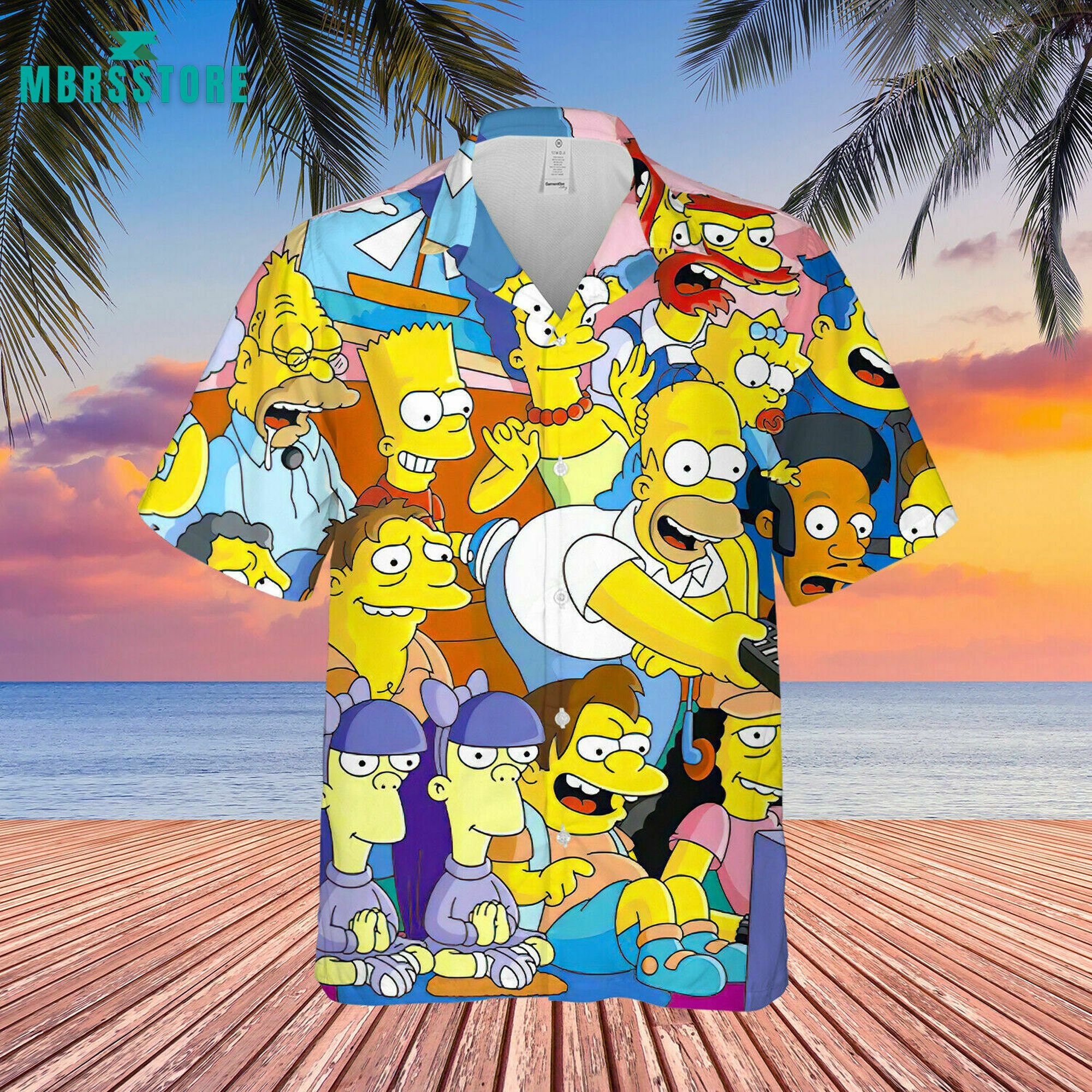 Product detail for The Simpsons Unisex Summer Beach Button Downs Hawaiian Shirt: