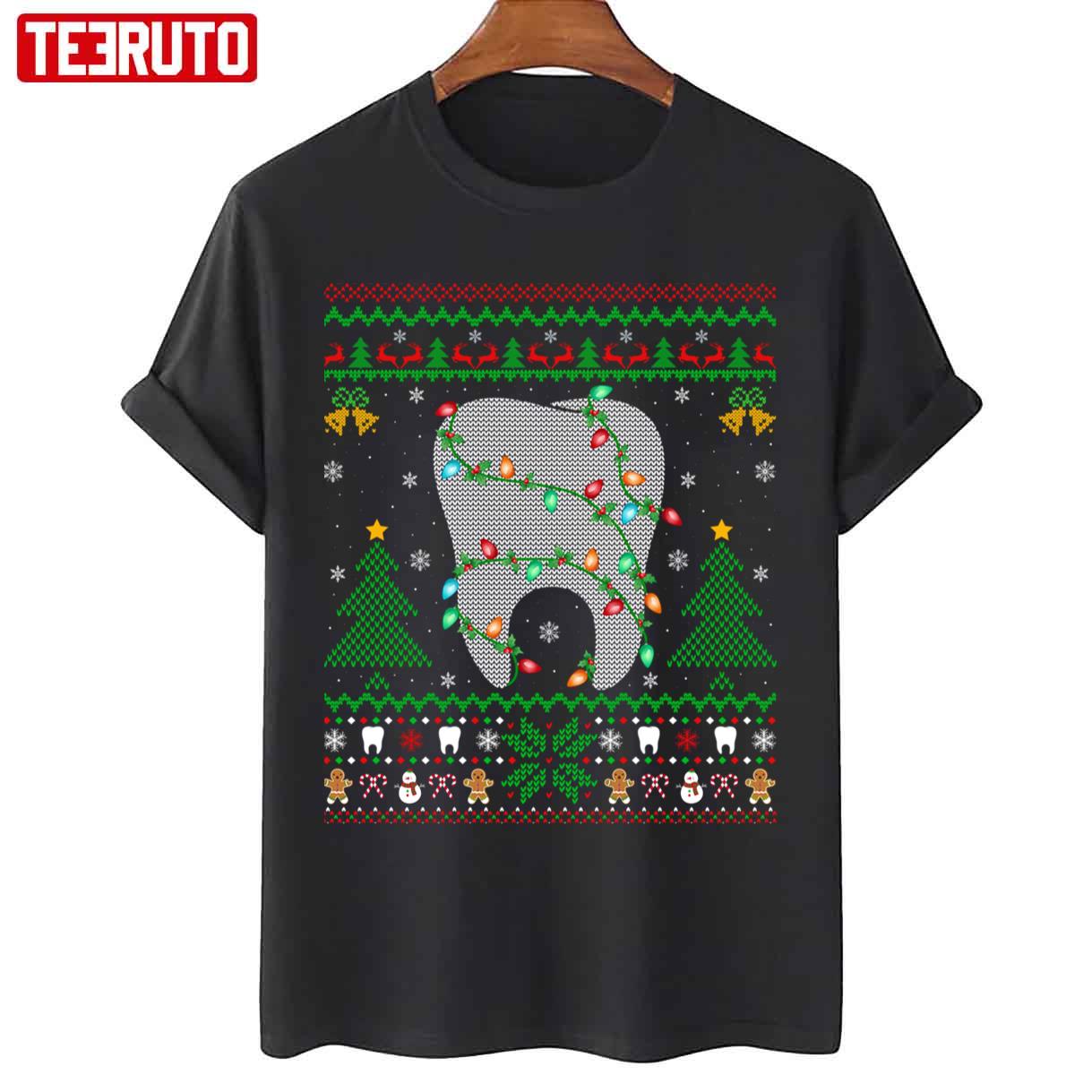 Tooth Knitted Christmas Ugly Pattern Dentist Xmas Unisex Sweatshirt