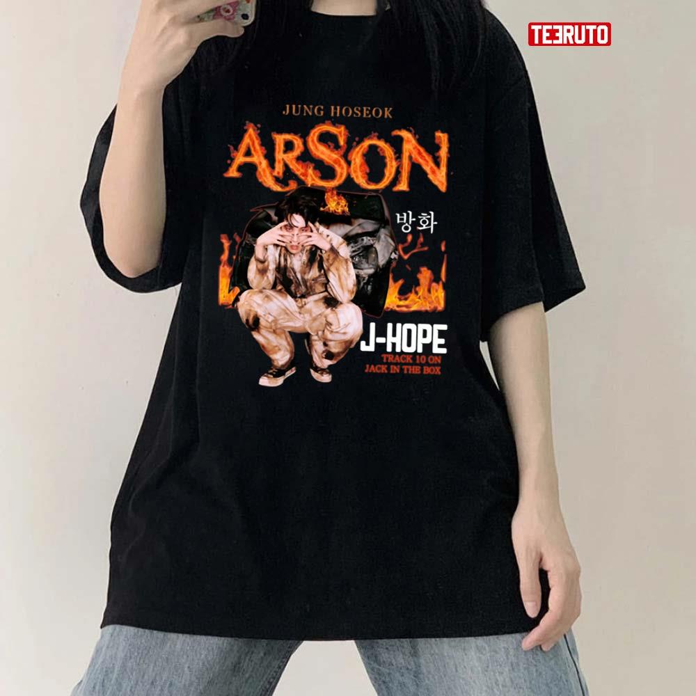 Product Track 10 On Jack In The Box j-hope Arson Unisex T-Shirt will shipped within 1 to 3 days after payment received.