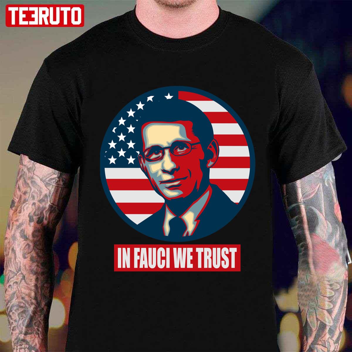 Product detail for US Flag In Fauci We Trust Dr Anthony Fauci Design Unisex T-shirt: