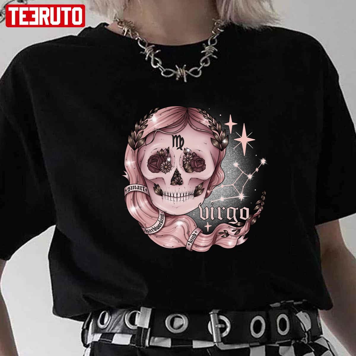 Product detail for Virgo Smart Hardworking Kind Pink Skeleton Halloween Unisex Sweatshirt: