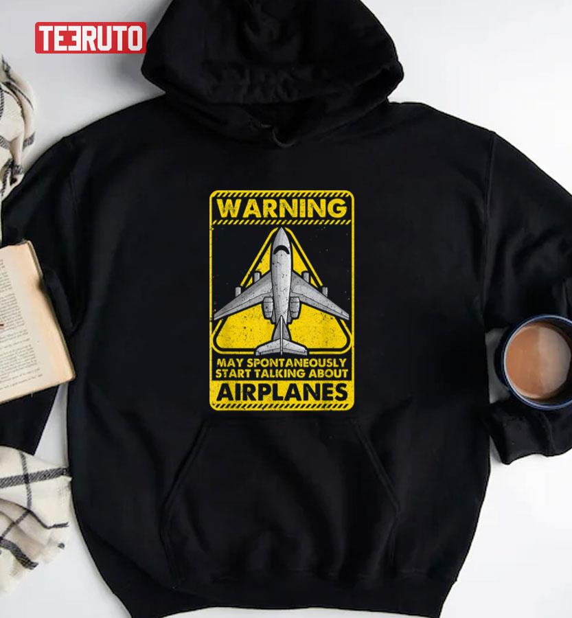 Warning I May Talk About Airplanes Funny Pilot & Aviation Airplane Vintage Unisex Sweatshirt