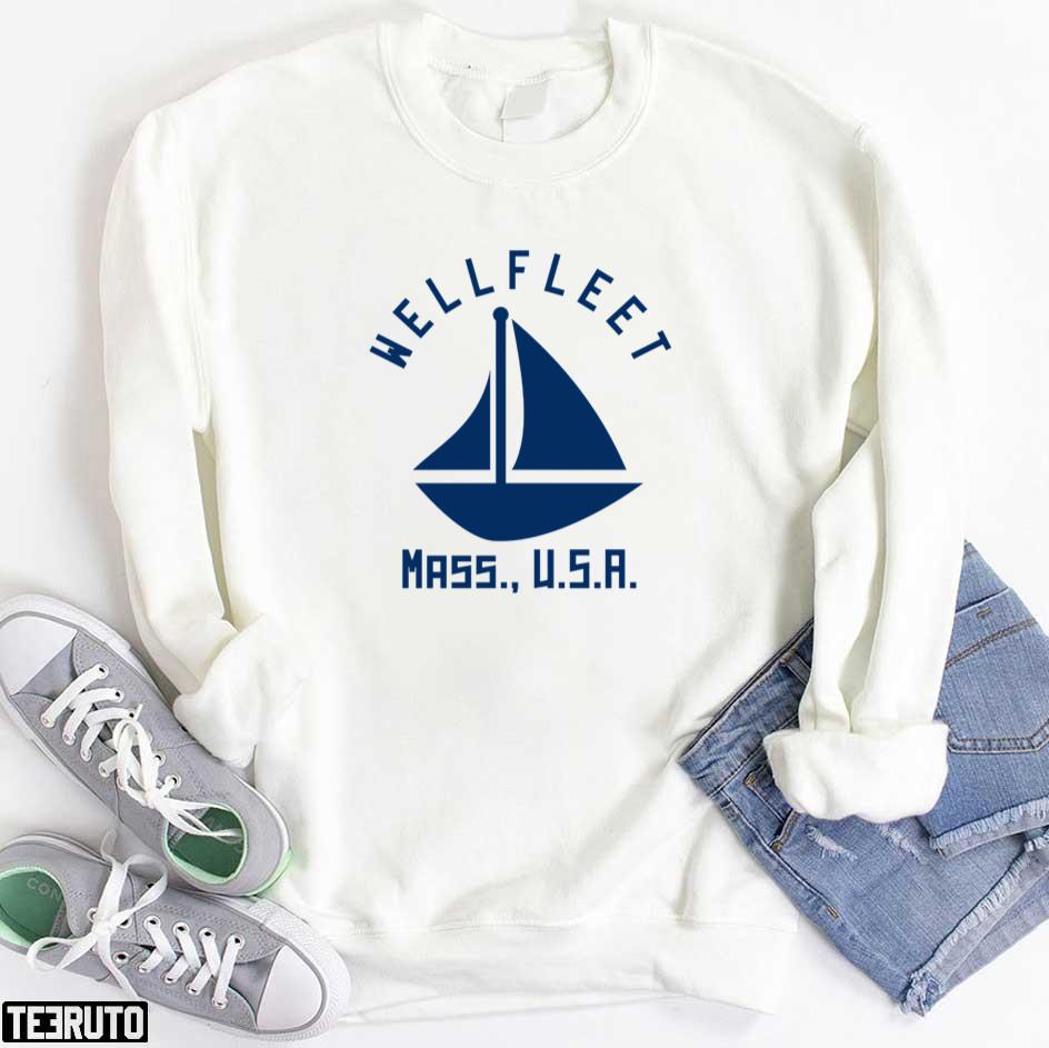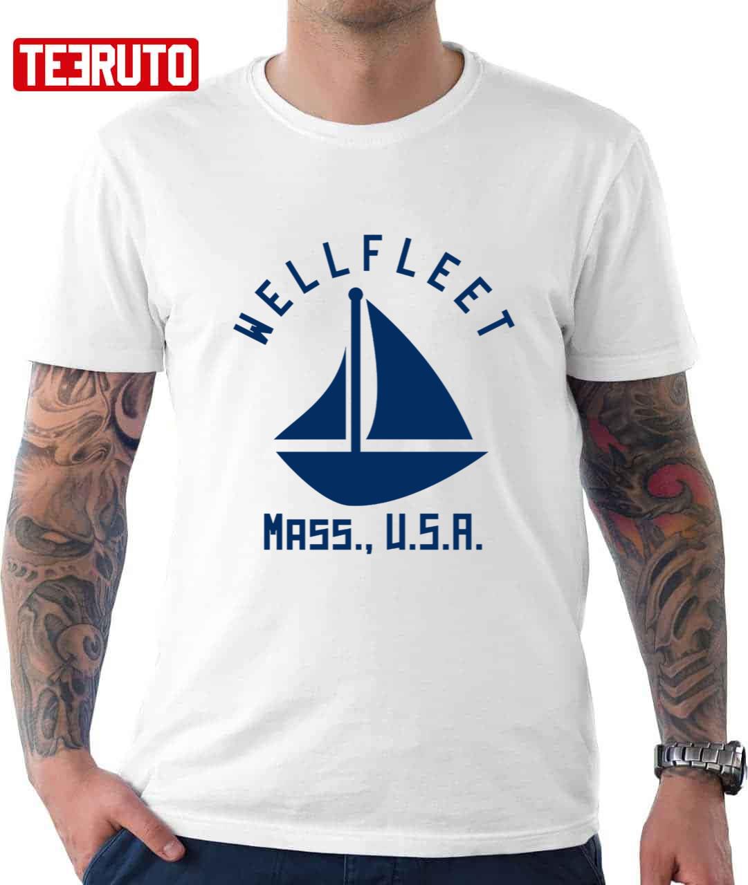 Wellfleet Massachusetts Sailing Boating Navy Blue Text Abstract Minimalist Unisex T-Shirt