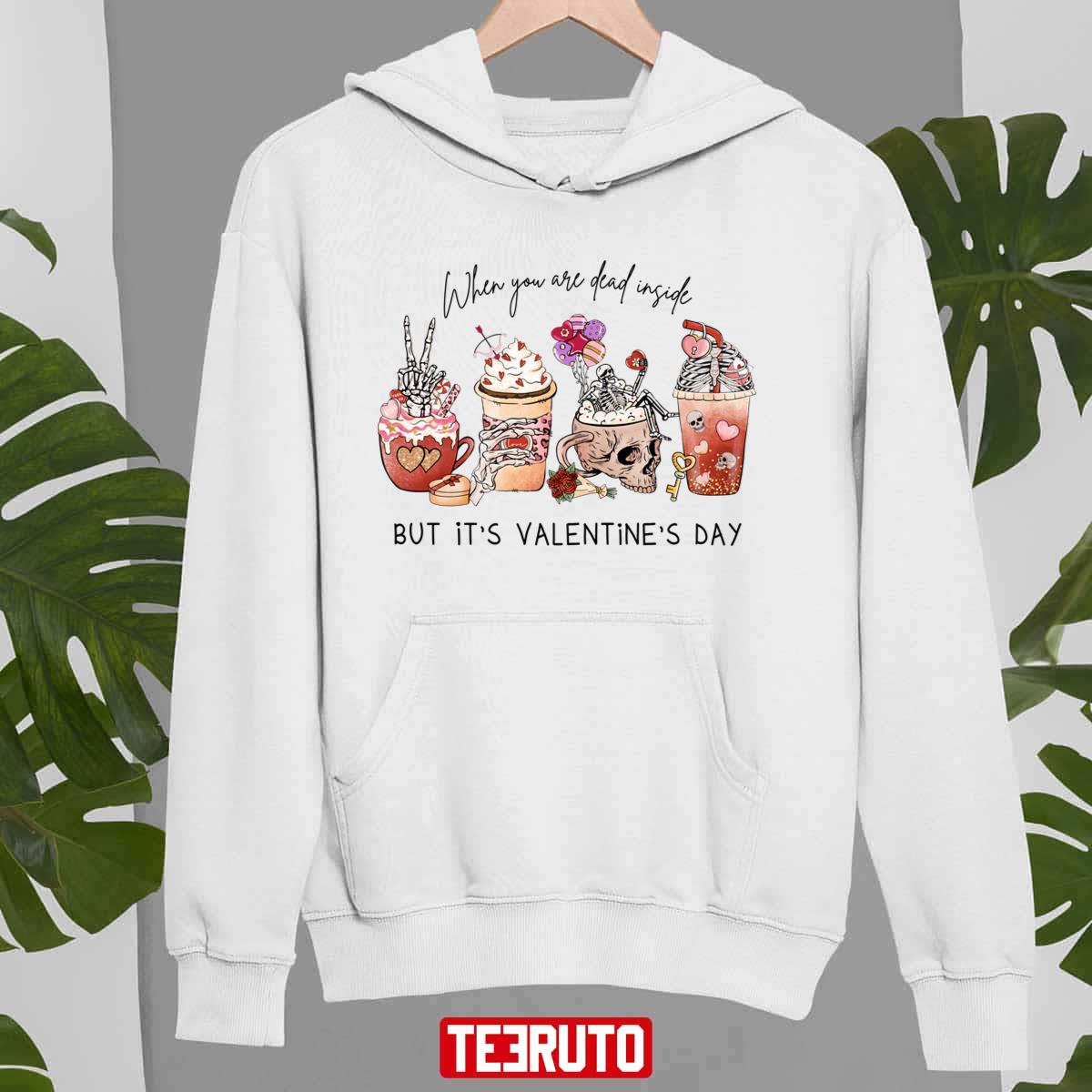 Product detail for When You're Dead Inside But It's Valentine's Day Funny Valentine's Day Drinks Unisex Sweatshirt: